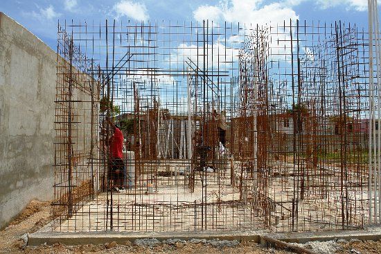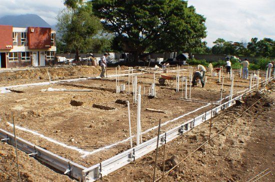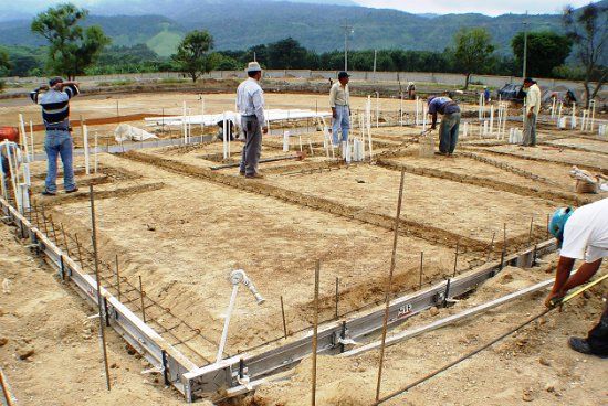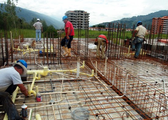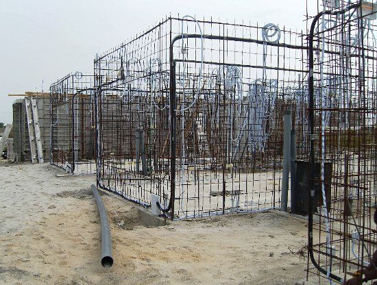 Once structural footings are dug, slab steel is installed in accordance with local code.