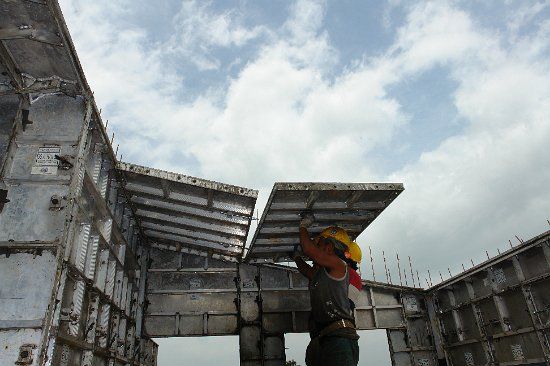 When constructing mass housing projects it is wise to prep slabs well in advance.