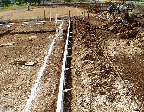 Trenches are then dug, plumbing installed, and WTF aluminum slab formwork is set.