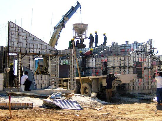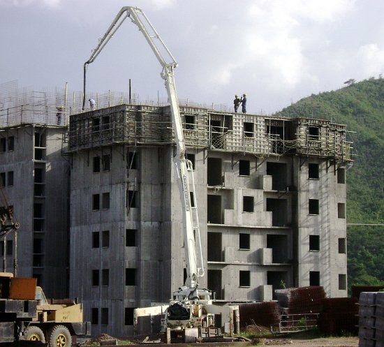 Concrete placement is normally completed using a boom pump but is dictated by local market equipment.