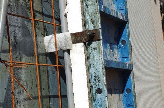 The expanded foam insulation is installed between formwork ties prior to setting exterior formwork.
