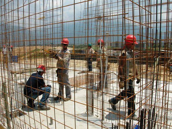 Steel is tied, forms set, and concrete placed repeating the daily cycle.