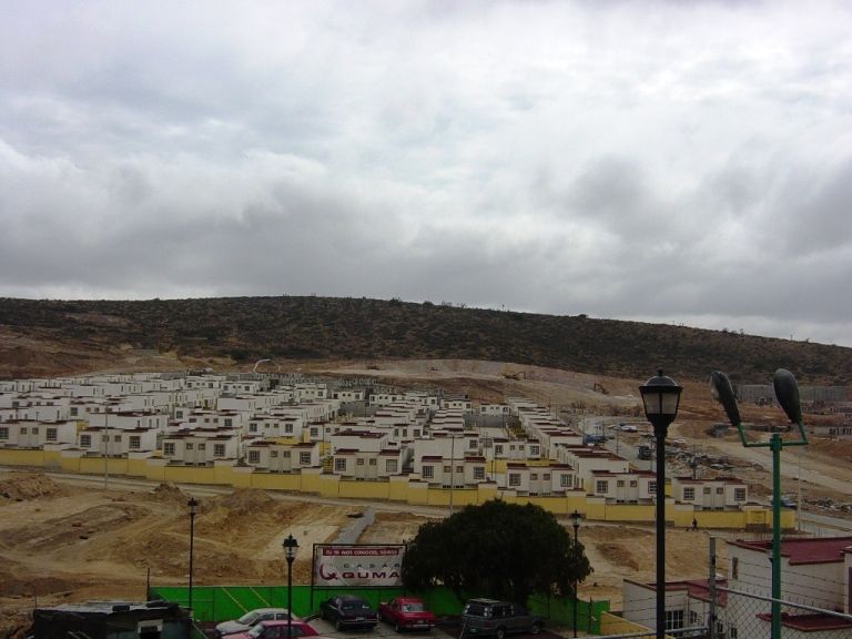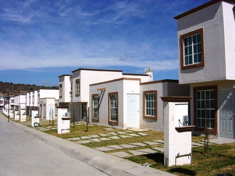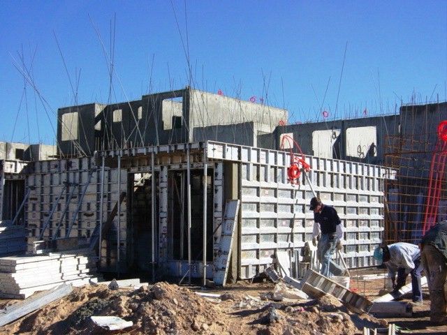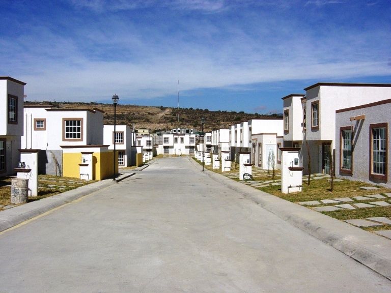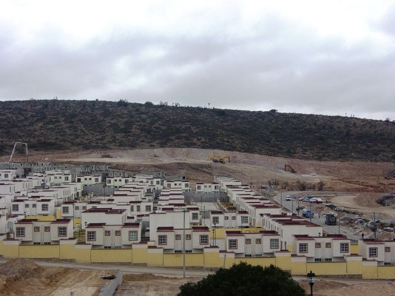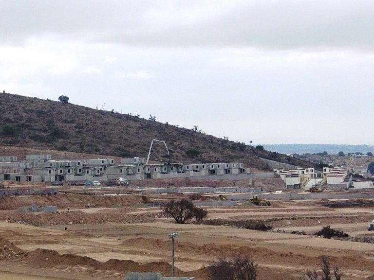 Satellite photos of mass housing construction in Pachuca, Mexico using aluminum formwork system.
